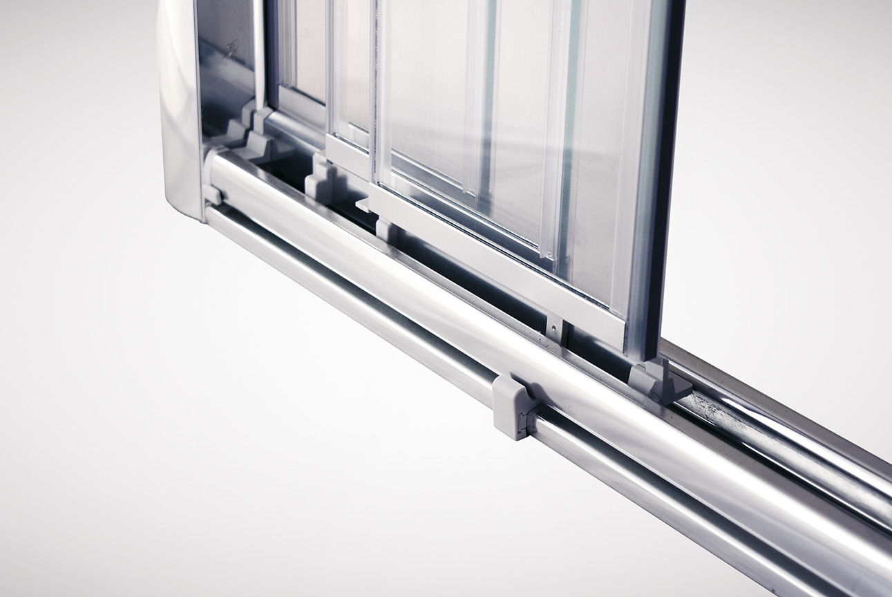 Detalle: Vista inferior-interior de guía y patines